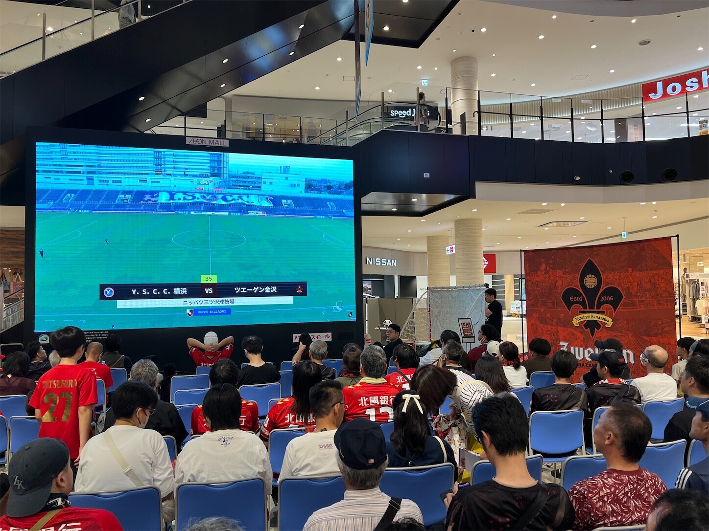 初めてイオンモール白山のパブリックビューイングで観た。キックオフ一時間弱前に着いたが、すでに座席取りの行列ができていて、結局座れなかった(まあ立ち見上等だったが)。巨大な画面は後ろからでも観やすくて、パブの小さいモニターで観るよりも迫力があってよかった。